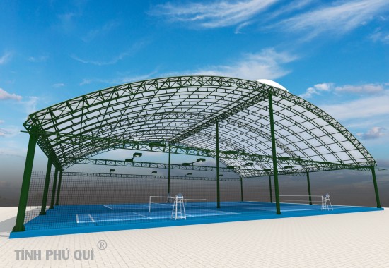 Thi công lắp ráp tại sân tennis.